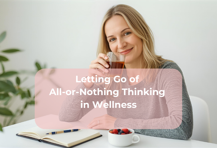 Letting go of all-or-nothing thinking opens the door to calmer, more enjoyable wellness. When the pressure disappears, consistency becomes easier — and your mind and body both benefit. Simple, steady habits done with compassion are what create lasting change.